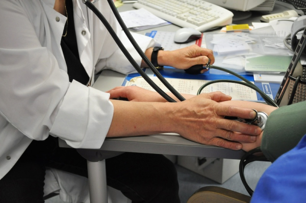 A doctor measures a patient’s blood pressure at the Kallio health centre in Helsinki. Photo: Vilja Vehkaoja / Lehtikuva