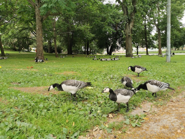 Barnacle geese in Kaisaniemi Park, Helsinki. Photo: Aleksi Mikola, Finnish Environment Institute