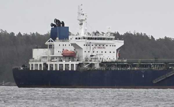 Cook Islands registered oil tanker Eagle S anchored near the Kilpilahti port in Porvoo, Finland on the Gulf of Finland on January 26, 2025. Photo: Heikki Saukkomaa / Lehtikuva