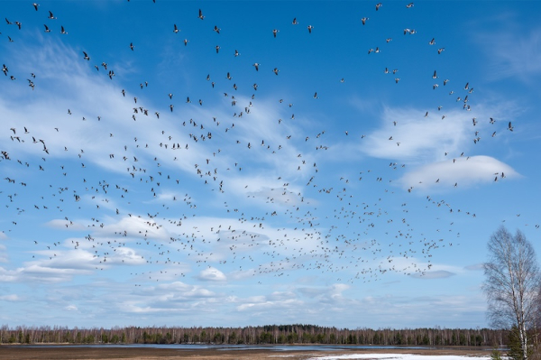 Flocks have gathered in large numbers at stopover sites, especially in eastern Uusimaa, Päijät-Häme, and Kymenlaakso. The largest recorded flock before the recent migration wave was 6,000 birds in Orimattila on 17 April. That number swelled to 20,000 in the same area on 28 April.