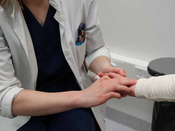 A physician examined a patient at the Tyks Lighthouse Hospital in Turku on 15 February 2024. The Finnish government is looking to deny undocumented immigrants access to most health care services, citing the need to balance public finances and protecting the health care system in the face of mass immigration. Its draft proposal has been rejected by a number of authorities, institutions and organisations, reports Helsingin Sanomat. (Laura Ukkonen – Str / Lehtikuva)