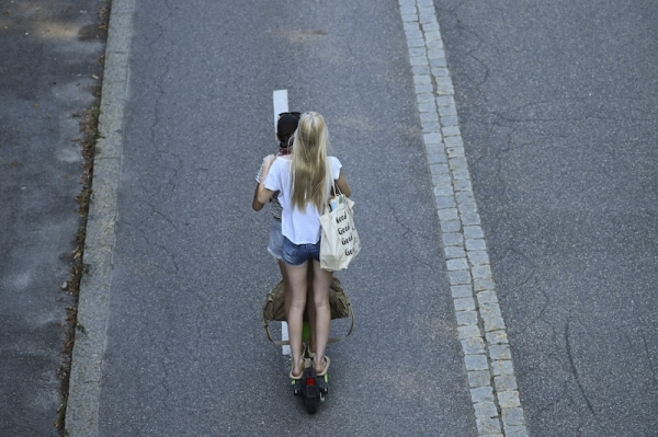 E-scooter rider and passenger in Helsinki. Photo: Mikko Stig / Lehtikuva