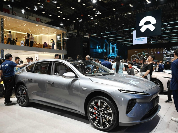 Attendees looked at Nio ET7 at the Beijing Auto Show on 3 May 2024. The European Union has threatened to impose tariffs of up to 38 per cent on electric vehicles imported from China, accusing the country of unfairly subsidising its automotive makers. (Greg Baker – AFP / Lehtikuva)