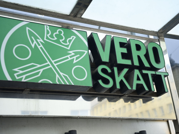 The logo of the Finnish Tax Administration in Helsinki on 2 August 2023. The Finnish Business and Policy Forum (Eva) has calculated that an ordinary, relatively frugal taxpayer will see their total tax burden decrease by 564 euros in 2024 as a result of lower social security contributions and, to a lesser extent, tax cuts. (Eelis Berglund – Lehtikuva)