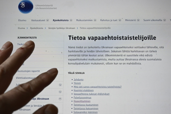 The Ministry for Foreign Affairs published an information package on its website on 3 February 2025 for those planning or considering travelling to Ukraine as volunteer fighters, as well as for their family and friends. LEHTIKUVA