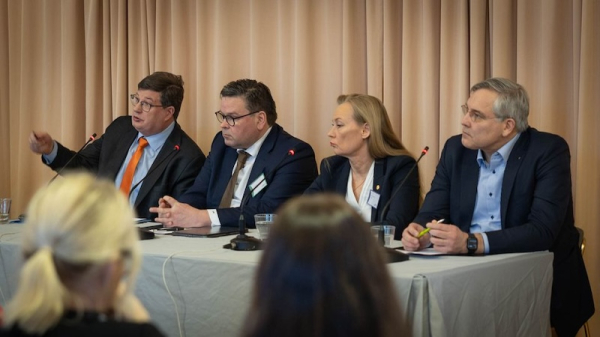 At the Finland’s Economic Growth and Workplace Equality seminar, panelists included Minister of Employment Arto Satonen, Rastor Institute Chairman Anssi Kujala, Akava Chair Maria Löfgren, and Suomen Yrittäjät CEO Mikael Pentikäinen.