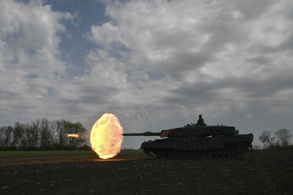 A Ukrainian tank crew of the 33rd Separate Mechanized Brigade fire a round from a Leopard 2A4 tank during a field training exercise at an undisclosed location in Ukraine, on April 30, 2025, amid the Russian invasion of Ukraine. Photo: Genya Savilov / AFP / Lehtikuva