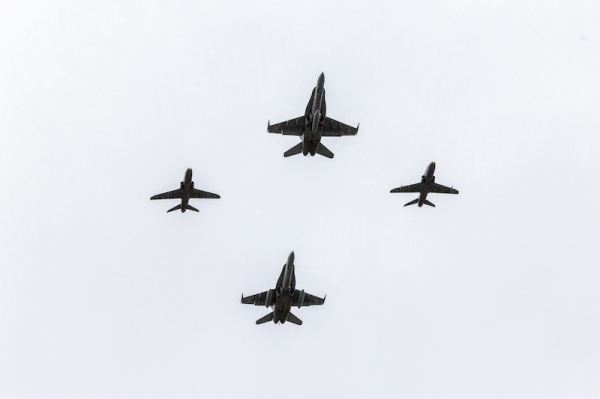 Two Finnish Air Force F/A-18 Hornets and two Hawks. Photo: Tommi Anttonen / Str / Lehtikuva