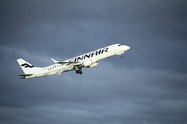 Finnair passenger plane in the air at Helsinki-Vantaa. LEHTIKUVA
