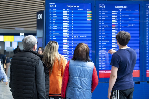 Passengers look at the departures board at Helsinki Airport. Photo: Elsa Paakkinen / Lehtikuva