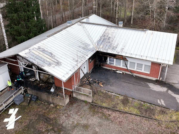 Police officers investigating a fire at a far-right clubhouse in Otsola, Hyvinkää, on 11 November 2024. Helsinki Police Department has warned that the fire could result in a higher-than-usual turnout for the handful of far-right protests taking place on Independence Day, 6 December. (Heikki Saukkomaa – Lehtikuva)