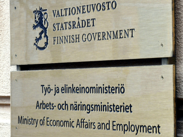 A sign outside the Ministry of Economic Affairs and Employment in Helsinki in March 2021. The Finnish government is planning on discontinuing a research division established under the ministry to evaluate and monitor the effectiveness of business subsidies, reports Helsingin Sanomat. (Heikki Saukkomaa – Lehtikuva)