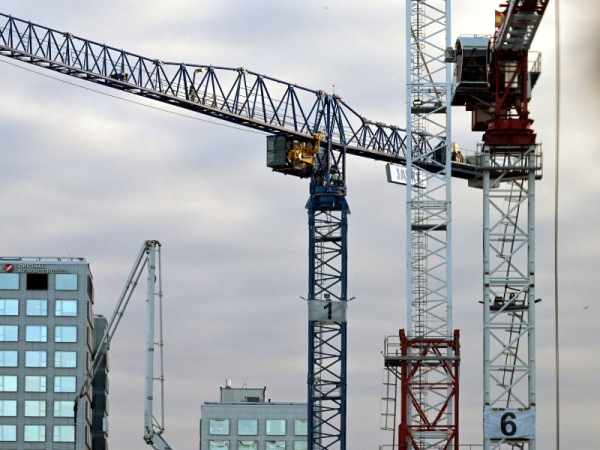 Cranes towered over a construction site in Pasila, Helsinki, on 12 February 2024. The Bank of Finland has revealed that Finnish households took out only about 920 million euros in new housing loans in February, setting an over 20-year low for the month. (Jussi Nukari – Lehtikuva)
