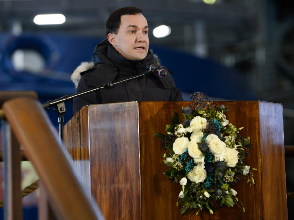 Minister of Economic Affairs Wille Rydman (PS) gave a speech at a shipyard in Helsinki on 27 November 2023. Rydman on Tuesday welcomed the Supreme Administrative Court’s (KHO) ruling as the most important ruling in decades for preventing “trash journalism”. (Mikko Stig – Lehtikuva)