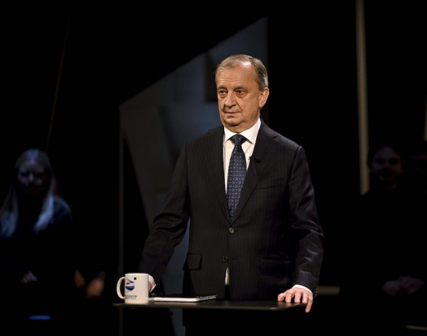 Movement Now’s presidential candidate Hjallis Harkimo in the studio before Yle’s big election debate in Helsinki on December 21, 2023. LEHTIKUVA