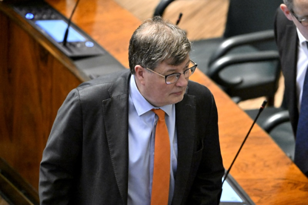 Minister of Employment Arto Satonen (NCP) at a plenary session of Parliament in Helsinki on 4 April 2025. LEHTIKUVA