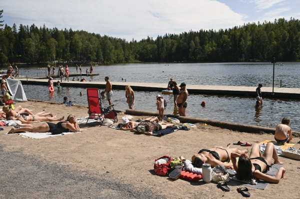 People catching sun on the Kuusijärvi beach in Vantaa. Photo: Mikko Stig / Lehtikuva