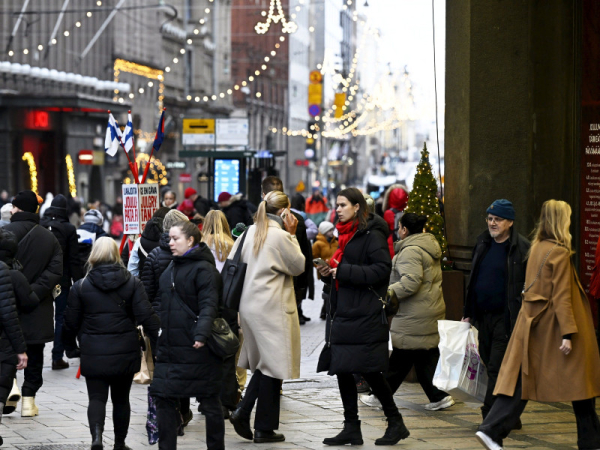 People in downtown Helsinki on Saturday, 23 December 2023. The Finnish capital is forecasting that its population will hit 700,000 in 2027, largely as a consequence of migration from overseas and, to a lesser extent, from other parts of Finland. (Vesa Moilanen – Lehtikuva)