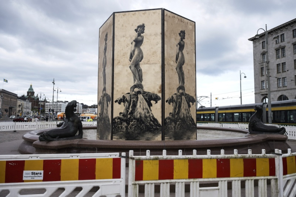 The City of Helsinki has enclosed the iconic Havis Amanda statue with steel and plywood screens in anticipation of possible large-scale public celebrations linked to upcoming international events.