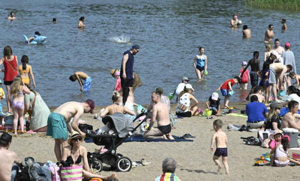 People enjoy a warm day at the beach in Espoo. Photo: Heikki Saukkomaa / Lehtikuva