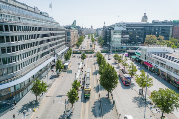 Trams in the city centre. Photo: Aarni Salomaa / City Transport Ltd
