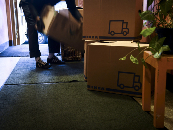 Furniture and boxes in the foyer of a block of flats in Helsinki in December 2020. Helsinki City Housing Company (Heka) is losing out on about a million euros in rental income every month due to an unusually high number of vacancies, reports Helsingin Sanomat. (Emmi Korhonen – Lehtikuva)