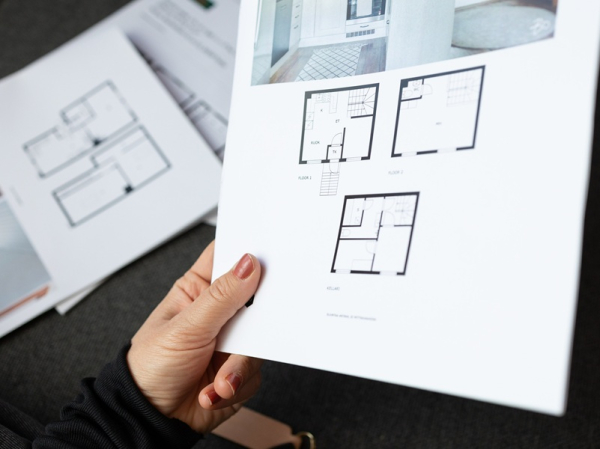 A person holding a brochure showing the floor plan of a flat. Despite falling interest rates and a long-awaited up-tick in the prices of old dwellings, the sales of new-built homes remain sluggish in Finland, according to Helsingin Sanomat. (Anni Savolainen – Lehtikuva)