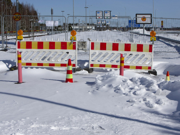 Closed gates outside the Vaalimaa border-crossing point in Virolahti, Eastern Finland, on 18 March 2024. The Finnish government has unveiled a bill for a special act that would enable it to temporarily deny the right of migrants to apply for international protection at or in the vicinity of the border. (Lauri Heino – Str / Lehtikuva)