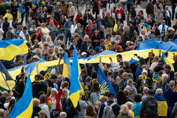 Several hundreds of people took part in the “United For Ukraine” event at Senate Square with colourful banners and festoons demanding freedom for the country and condemning the Russian aggression.