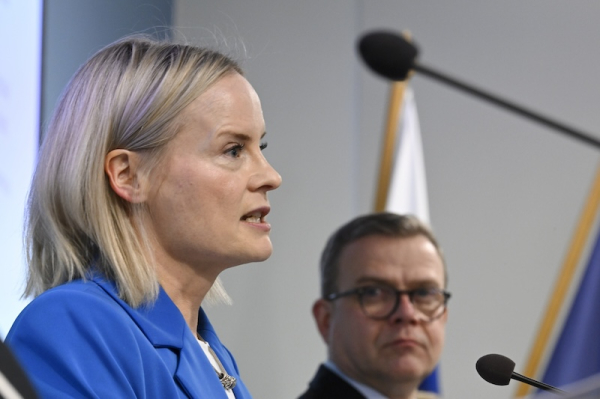 Minister of Finance Riikka Purra and Prime Minister Petteri Orpo at the government’s budget framework negotiations press conference at the Government Palace in Helsinki. Photo: Markku Ulander / Lehtikuva