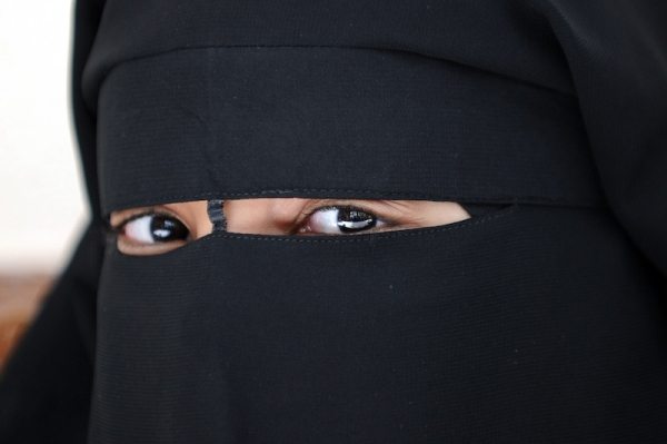 A Muslim woman wearing the niqab (veil which covers the body and leaves only a small strip for the eyes). Photo: Fred Dufour / AFP / Lehtikuva