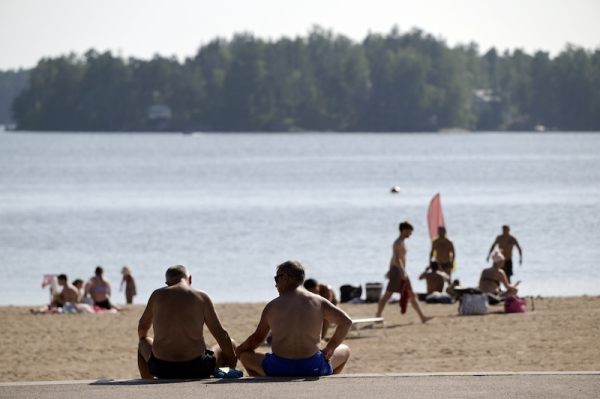 People on a hot day at Aurinkolahti beach in Vuosaari, Helsinki. Photo: Antti Aimo-Koivisto / Lehtikuva