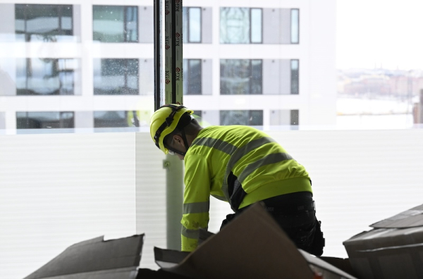 A worker at the construction site of the Horisontti office building, built by SRV, in the Kalasatama area of Helsinki. LEHTIKUVA