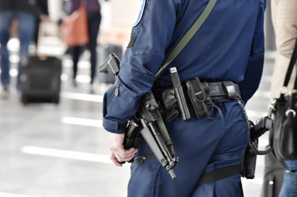 Police patrolled Helsinki Airport with a submachine gun visible. Photo: Jussi Nukari / Lehtikuva