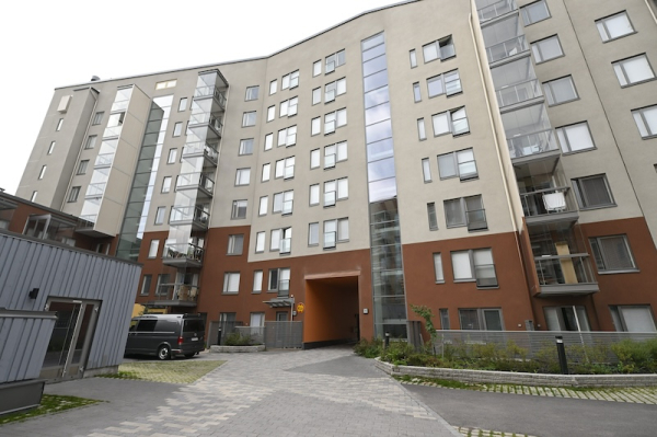 An apartment building in Niittykumpu, Espoo, on 13 September 2025. Police shot a person during the night between Friday and Saturday in a residential apartment area in Espoo. Photo: Mikko Stig / Lehtikuva