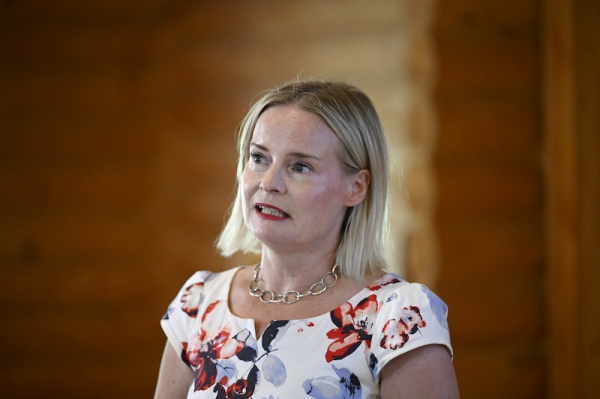 Finance Minister Riikka Purra (Finns) outlined the main points of her budget proposal following internal budget negotiations at the Ministry of Finance in Moisniemi, Espoo, on 6 August 2025. Photo: Antti Aimo-Koivisto / Lehtikuva