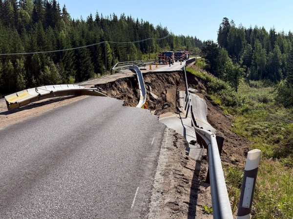Virtaintie, or Highway 23, is closed to traffic at the site of the collapse. Photo: Central Finland Ely-Center Handout / Lehtikuva