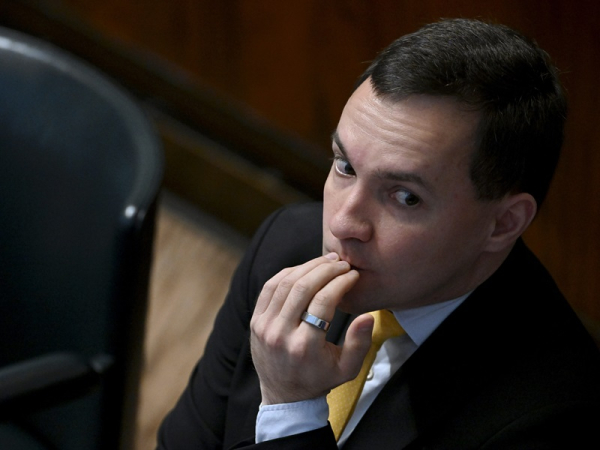 Minister of Economic Affairs Wille Rydman (PS) attended a plenary session in the Parliament House in Helsinki on Monday, 24 June 2024. Facing a motion of no confidence brought by three opposition parties over his response as cabinet member to allegations about his past conduct, Rydman received the confidence of his fellow lawmakers by a vote of 92 to 76. (Mikko Stig – Lehtikuva)