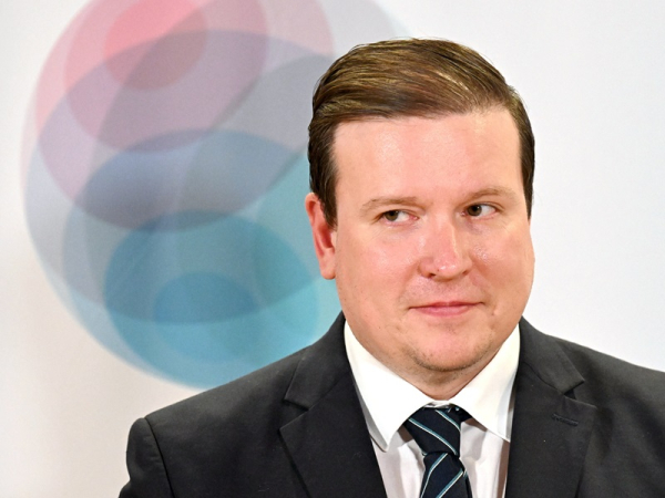 Minister for Foreign Trade and Development Ville Tavio (PS) met reporters after delivering a speech at the Annual Meeting of Heads of Missions in Helsinki on 26 August 2024. MTV on Friday reported that Tavio has decided that Finland will not participate in an international alliance promoting a gender-responsive and inclusive recovery in Ukraine. (Jussi Nukari – Lehtikuva)