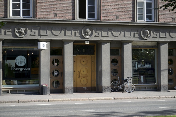 A residential building on Mechelininkatu in Helsinki’s Töölö district on 30 September 2025. In the shooting that took place there on Monday evening, a 16-year-old boy was injured and taken to hospital but is not in life-threatening condition according to police. Photo: Antti Aimo-Koivisto / Lehtikuva