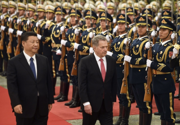 President of China, Xi Jinping (left) and President of Finland, Sauli Niinistö inspecting the guard of honour in Beijing on Monday, January 14, 2019. The President of Finland, Sauli Niinistö is on an official two days state visit to China. / Lehtikuva