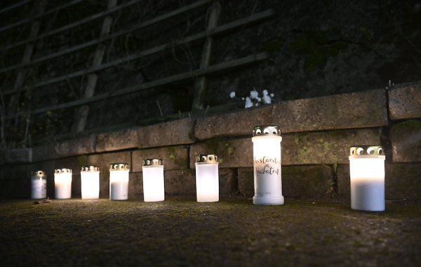 Memorial candles outside Sokinvuori daycare in Suvela, Espoo, on 6 November 2025. Photo: Heikki Saukkomaa / Lehtikuva