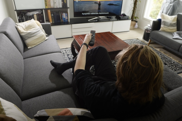 A man watching TV on the couch in Espoo. Photo: Mikko Stig / Lehtikuva