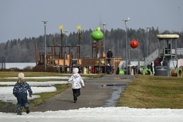 Children frolic in the Oittaa outdoor area in Espoo on Easter Sunday, March 31, 2024. LEHTIKUVA