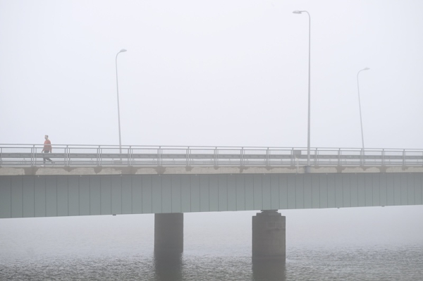 Dense fog covered the Lauttasaari Bridge in Helsinki on the morning of Friday, 5 September 2025. Photo: Mikko Stig / Lehtikuva