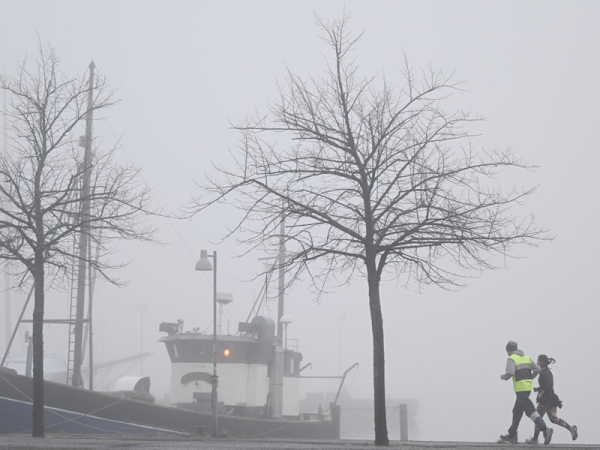 Joggers ran along the misty waterfront in Pohjoisranta, Helsinki, on 27 December 2024. Weather in the capital region is expected to turn from gray to bright and colder starting on Monday, 30 December, according to the Finnish Meteorological Institute (FMI). (Vesa Moilanen – Lehtikuva)