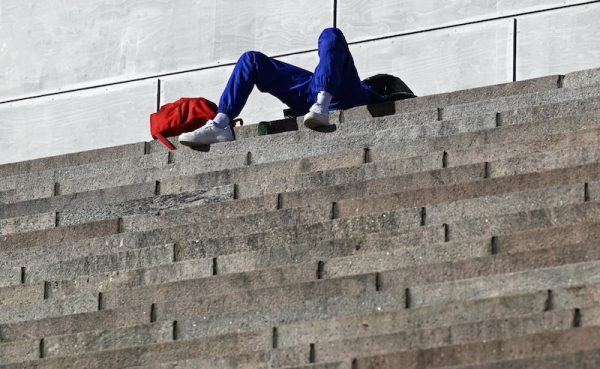 A citizen enjoys the sun on the stairs of the Helsinki Cathedral on Wednesday, 19th Marcuh, 2025 / Lehtikuva