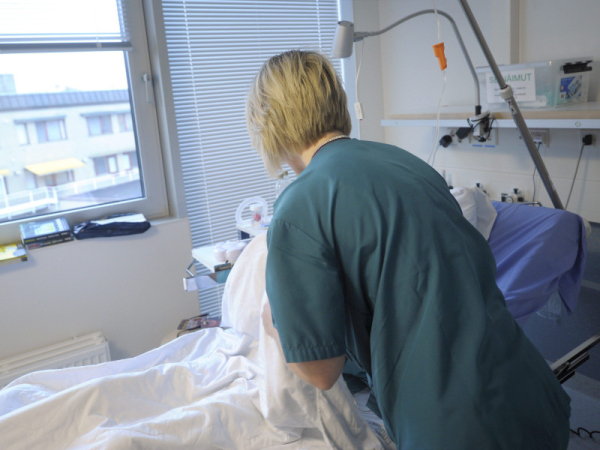 A nurse attending to a patient at the inpatient ward of Helsinki University Hospital in October 2013. YLE on Friday reported that both hospitalisations and wastewater analyses indicate that coronavirus infections are increasing rapidly in Finland. (Vesa Moilanen – Lehtikuva)