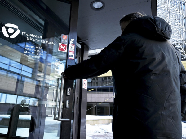 A client entering a TE Office in Helsinki in March 2023. The Ministry of Economic Affairs and Employment’s latest data on unemployed job seekers indicate that lay-offs are spreading from construction-related fields to fields such as battery manufacturing and information and communication technology, reports YLE. (Vesa Moilanen – Lehtikuva)