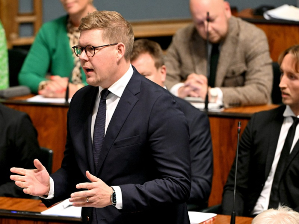 Antti Lindtman, the chairperson of the Social Democrats, spoke during a question-time debate in the session hall of the Finnish Parliament on Thursday, 5 September 2024. The Social Democrats has re-emerged as the most well supported party in the country as a result of voters moving within the green-left bloc, according to the latest opinion poll commissioned by YLE. (Jussi Nukari – Lehtikuva)